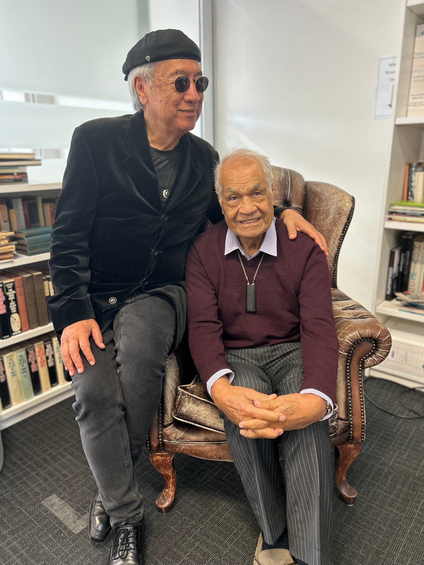 Every production has been different. This one will be the most radical of all, being in both English and te reo. Tiri has a new kākahu, she looks flash as and, by the way, her reo comes from her Ringatū ancestry. What a honour to be gifted the wisdom of Ringatū wairua, karakia and prophetic utterance by my cuz Sir Haare Williams. That’s him with the writer below. Cuz, you are amazing.